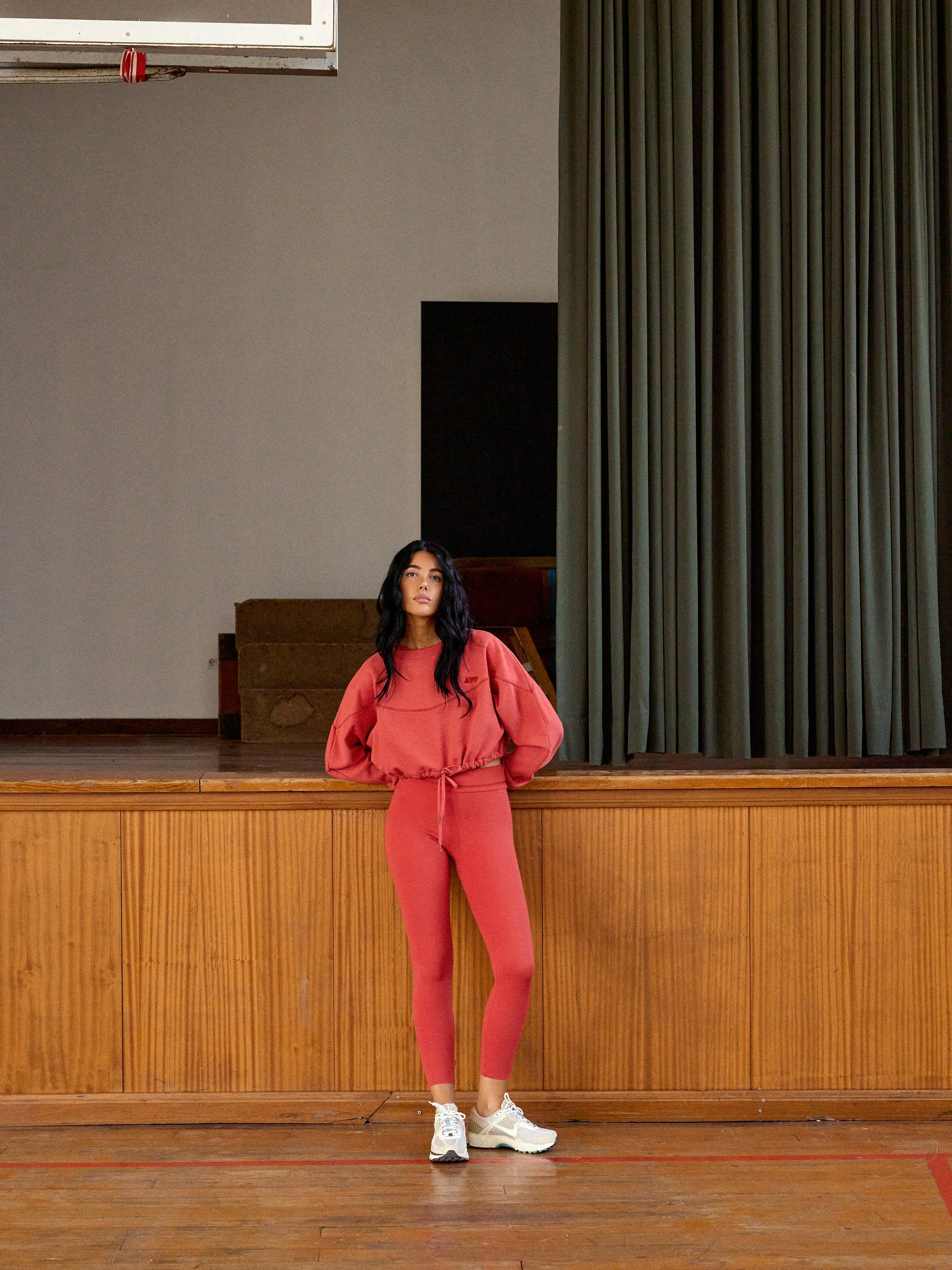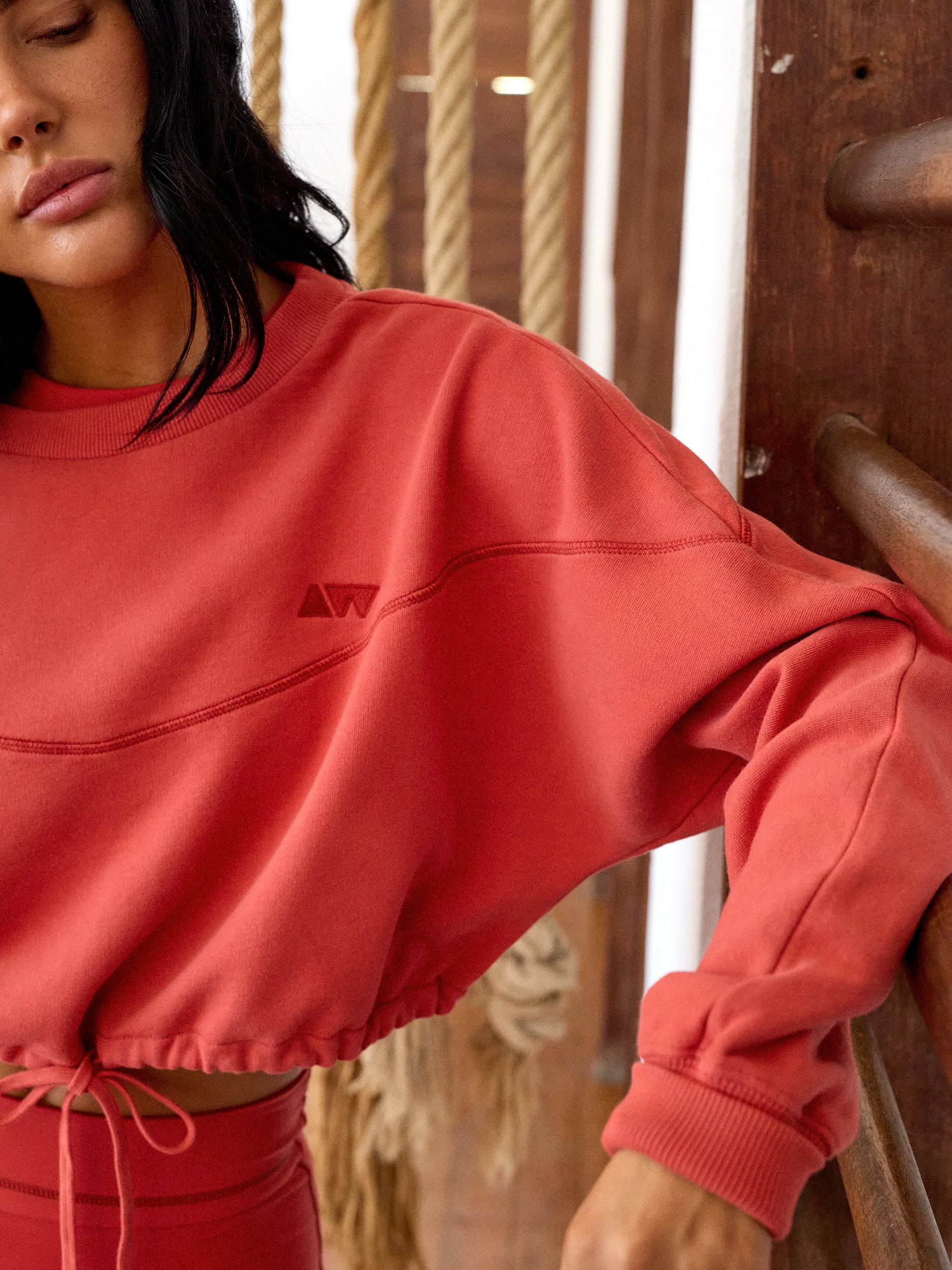 Sweatshirt Cropped com pormenor de costura, ajustável na parte do baixo. Corte que combina liberdade e presença, ideal para marcar estilo sem esforço.