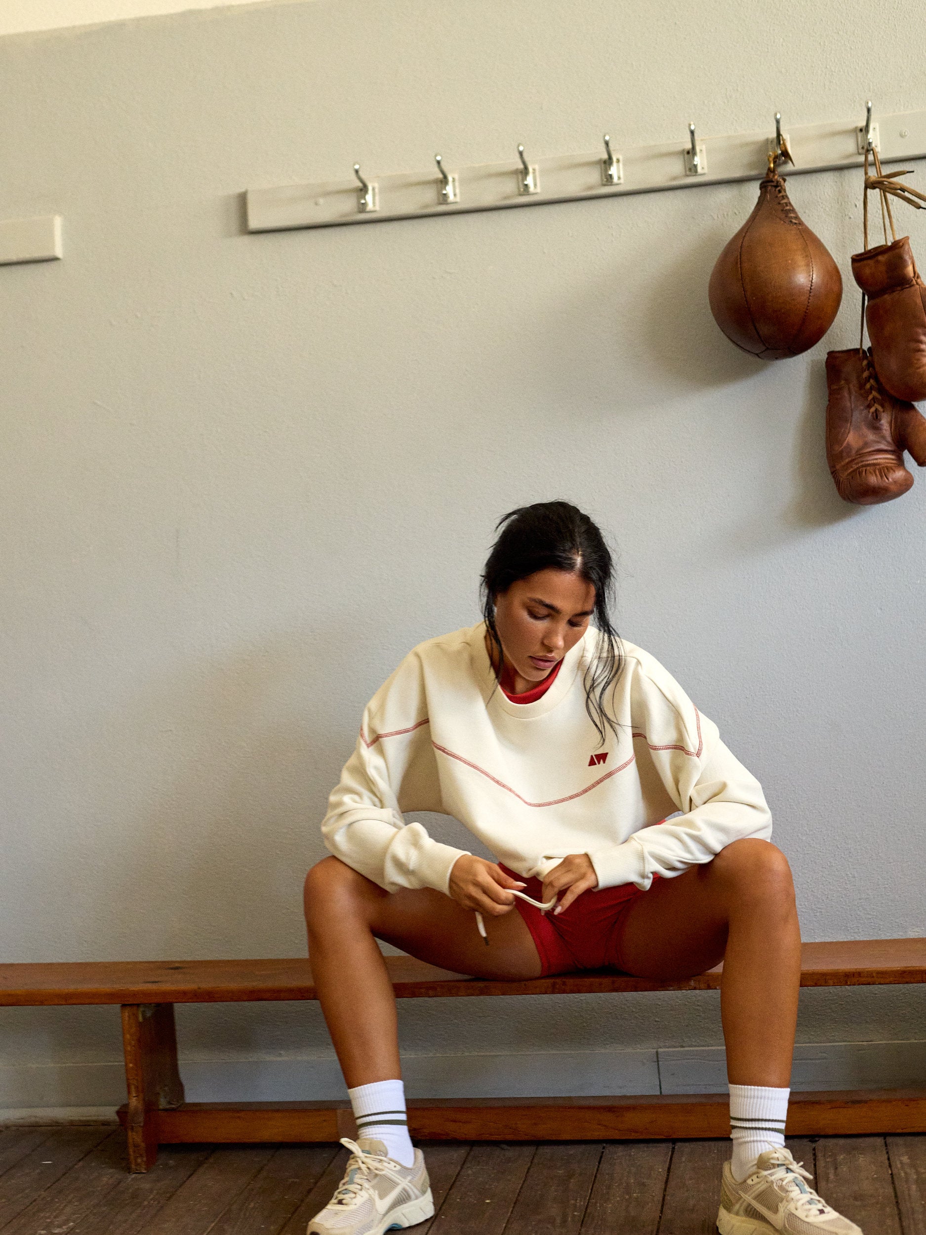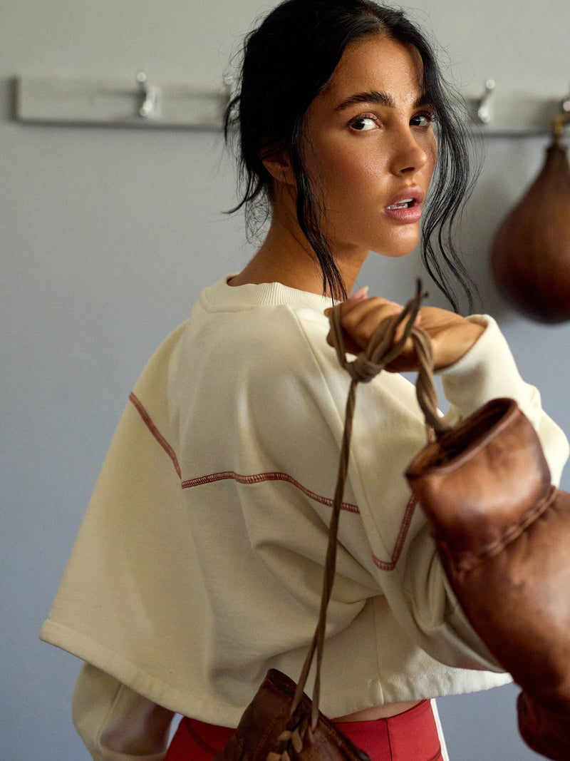 Sweatshirt Cropped com pormenor de costura, ajustável na parte do baixo. Corte que combina liberdade e presença, ideal para marcar estilo sem esforço.