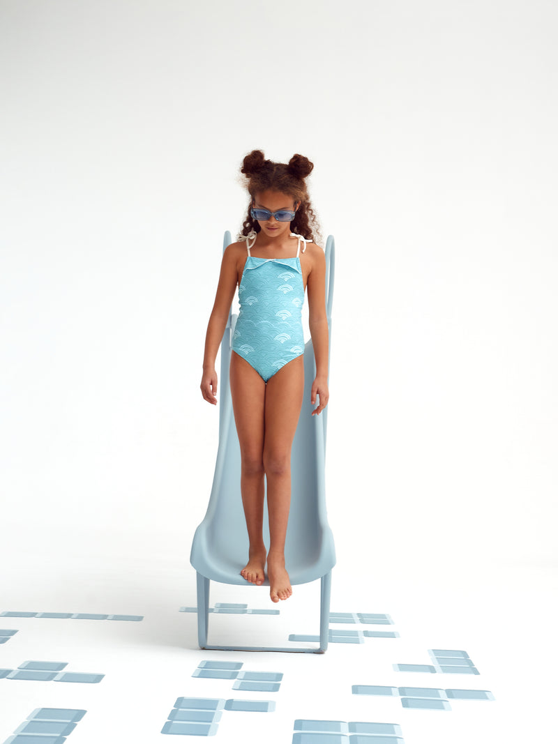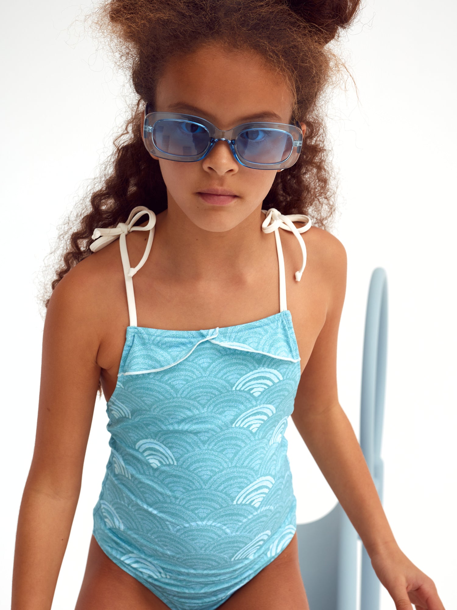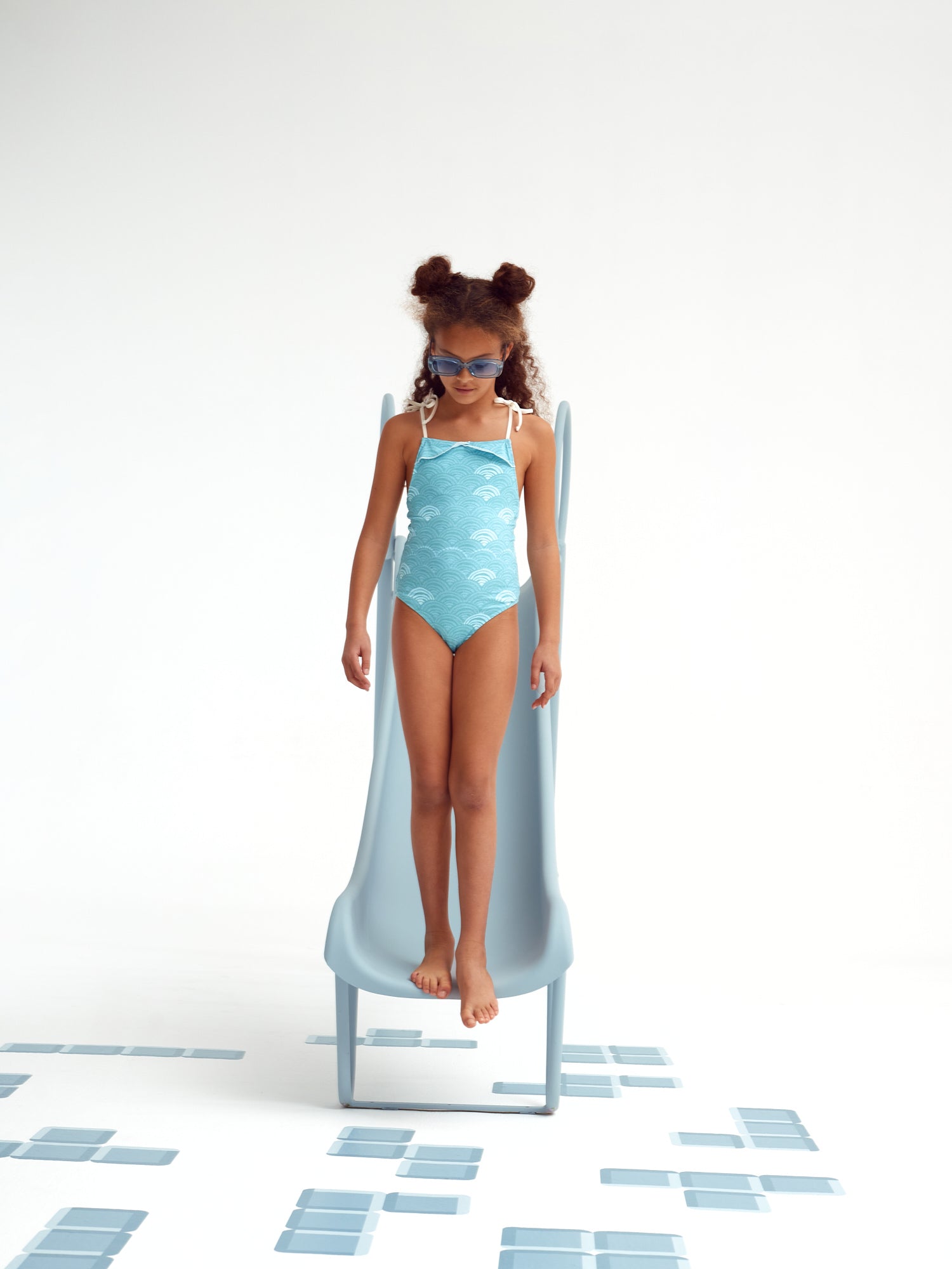 Swimsuit with ruffle detail and adjustable straps on the shoulders that can be worn crossed or straight.