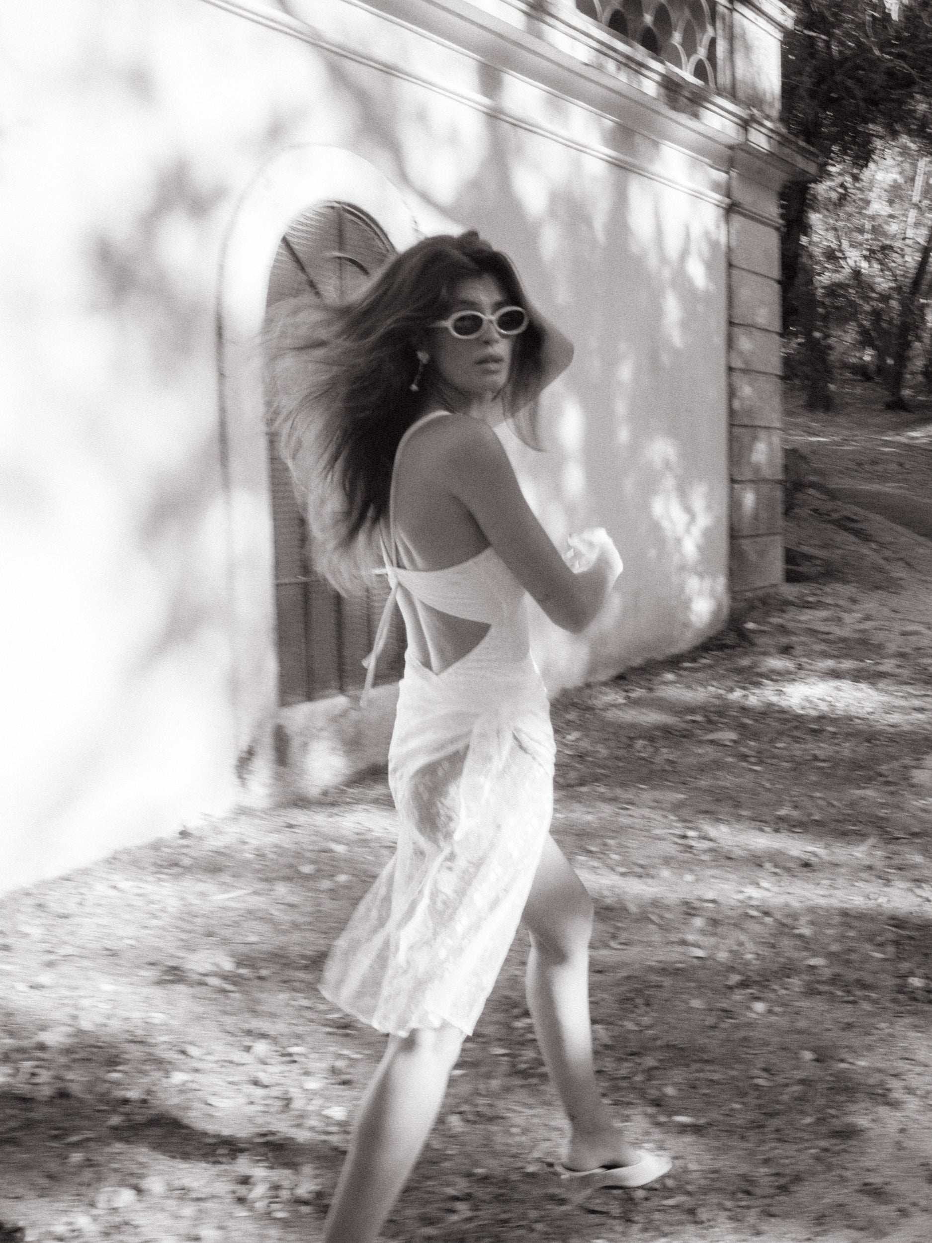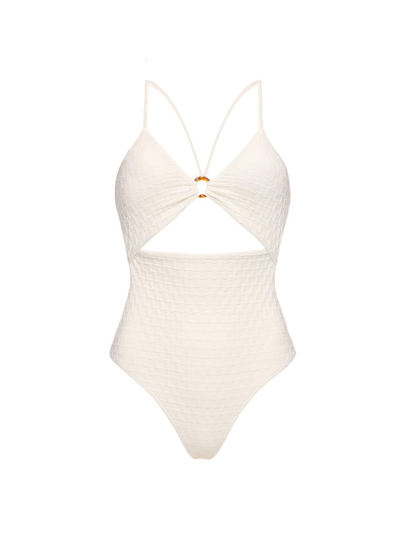 Para la novia que de verdad nada. Líneas limpias, tela de novia, luce igual de bien en un barco que en el asiento trasero de un coche clásico.