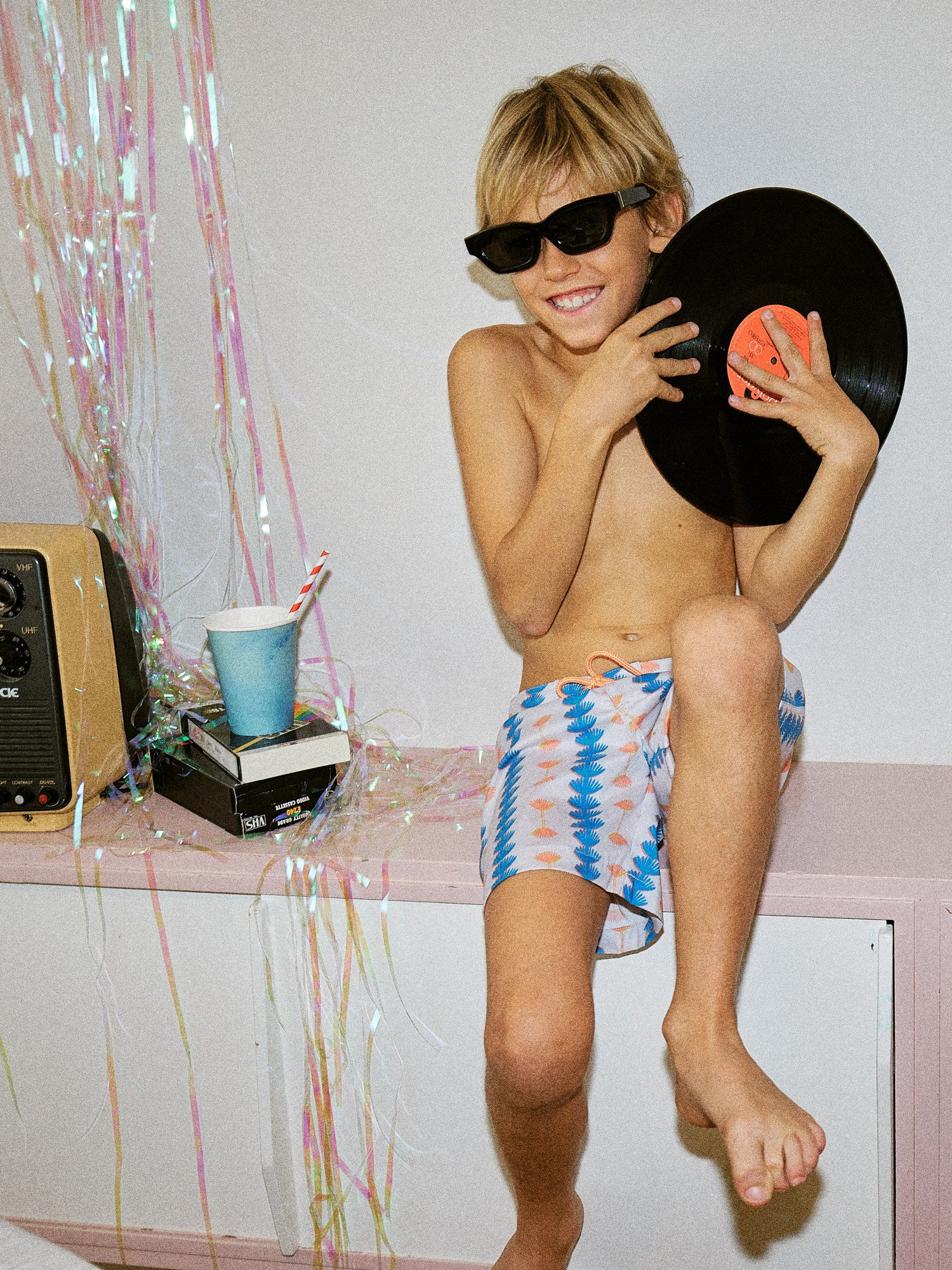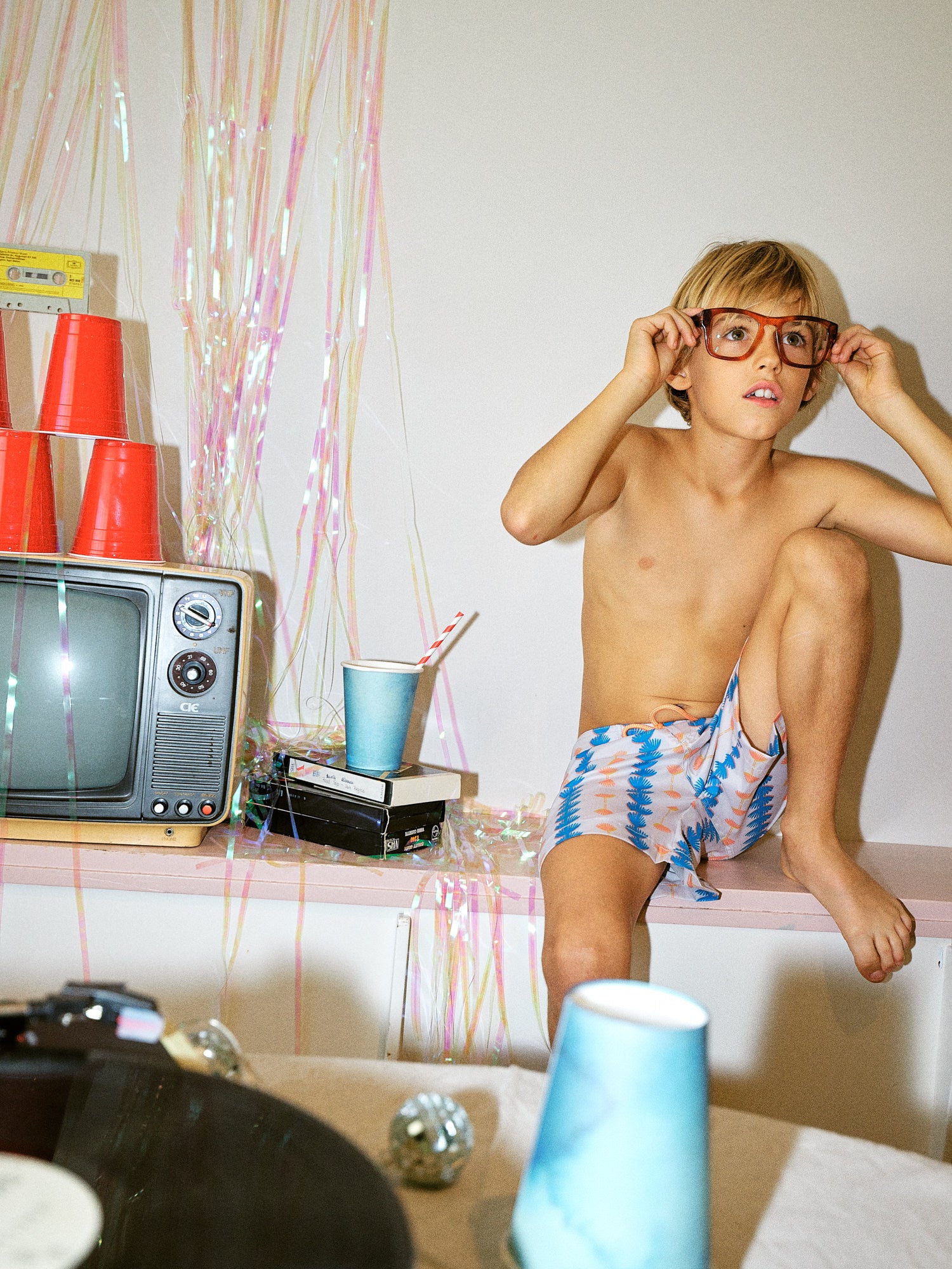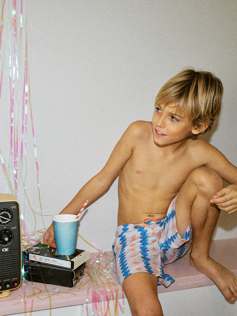 Calções modelo surf. Elástico interior ajustável na cintura.