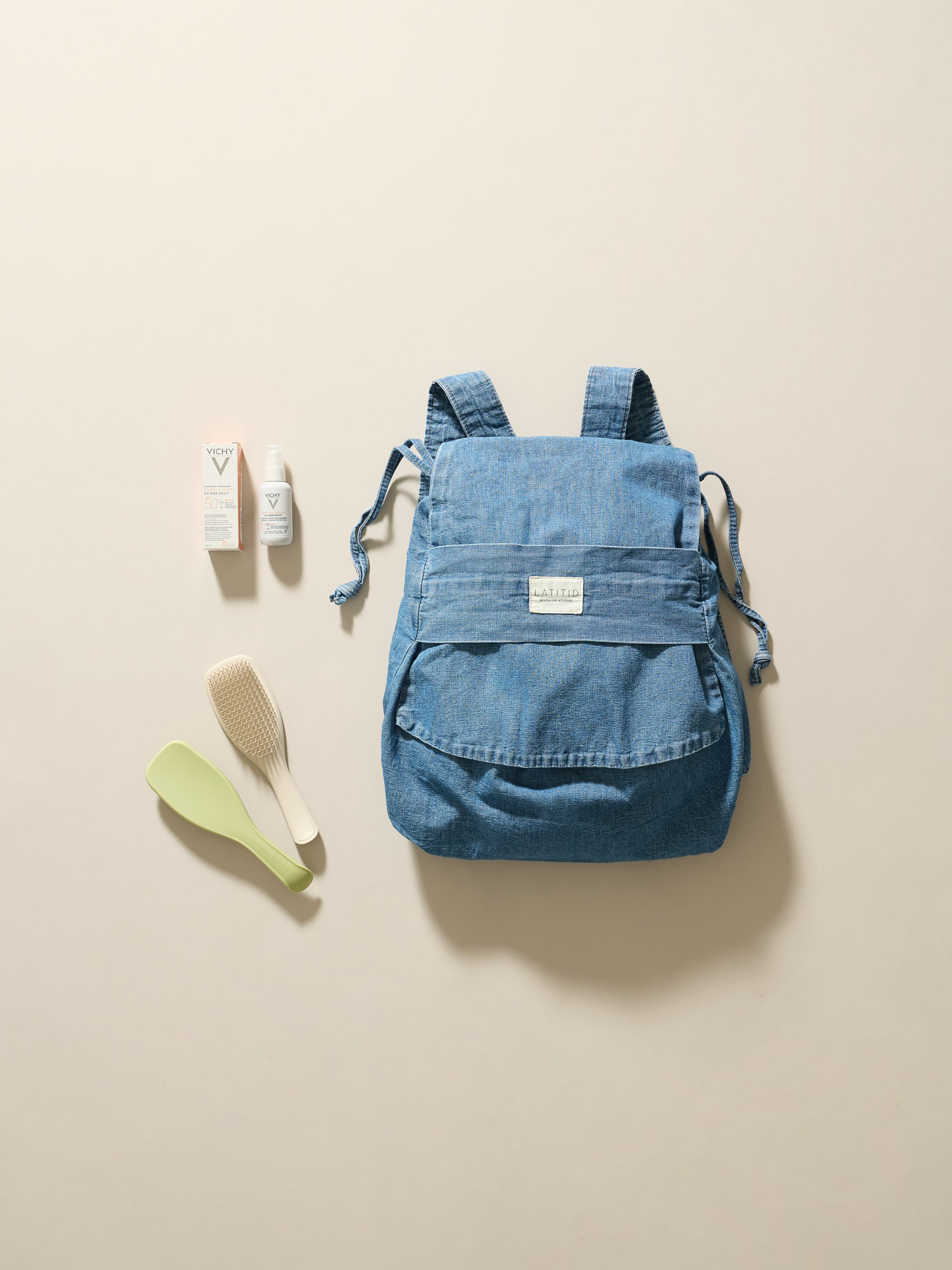 • Rider’s Backpack | Blue Denim: A mochila perfeita para levar tudo o que precisa durante o dia.