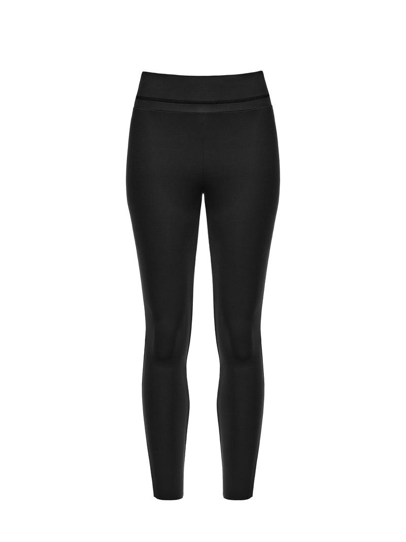 Leggings de cintura subida e comprimento até ao tornozelo. Pormenor de costuras em contraste na cintura e na lateral. Linhas que valorizam o corpo e se adaptam a cada momento, entre performance e estilo.