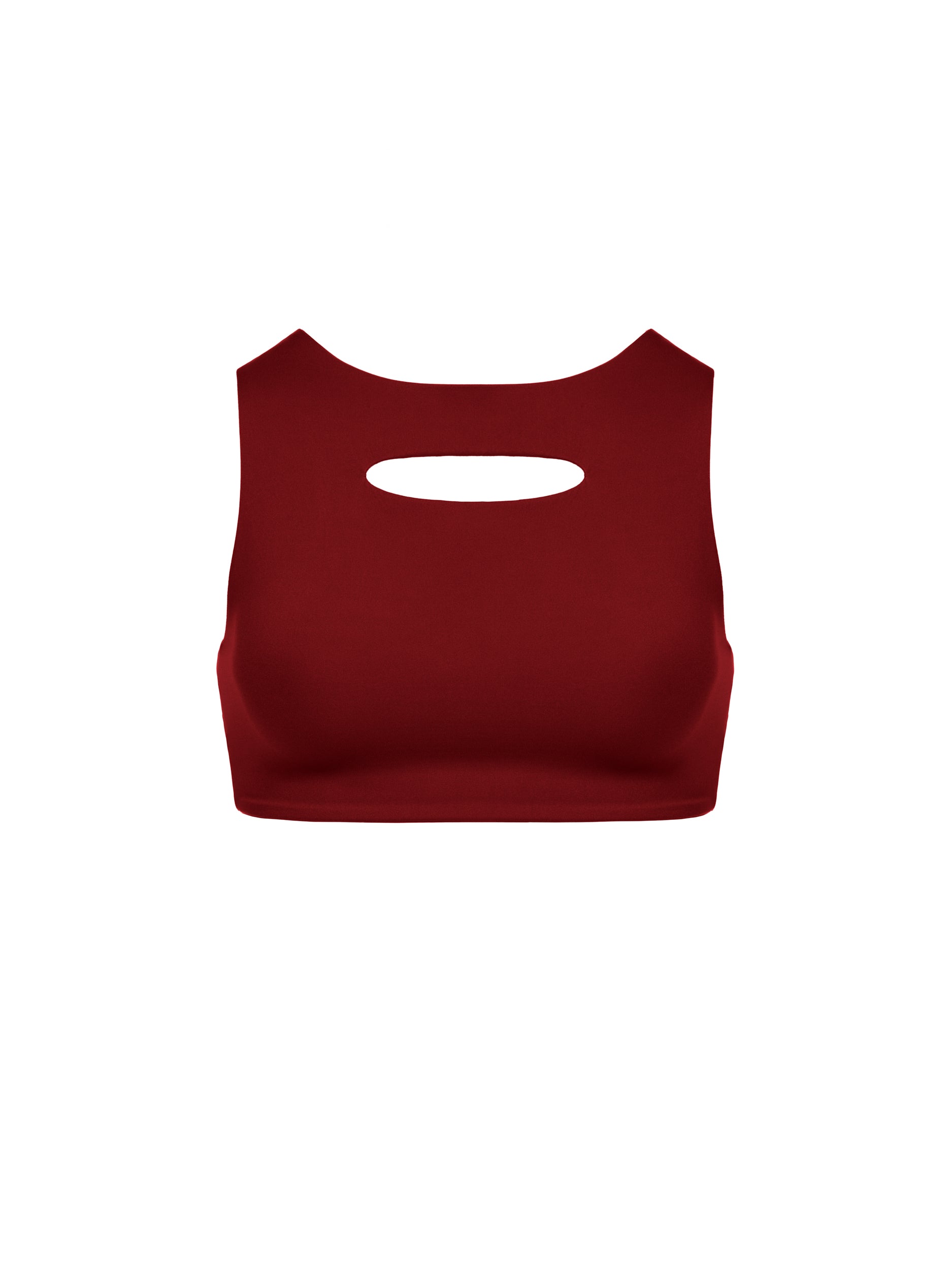 Top curto de decote subido com rasgao no peito, e abertura costas. Feito para acompanhar cada movimento e cada meta do teu dia.
